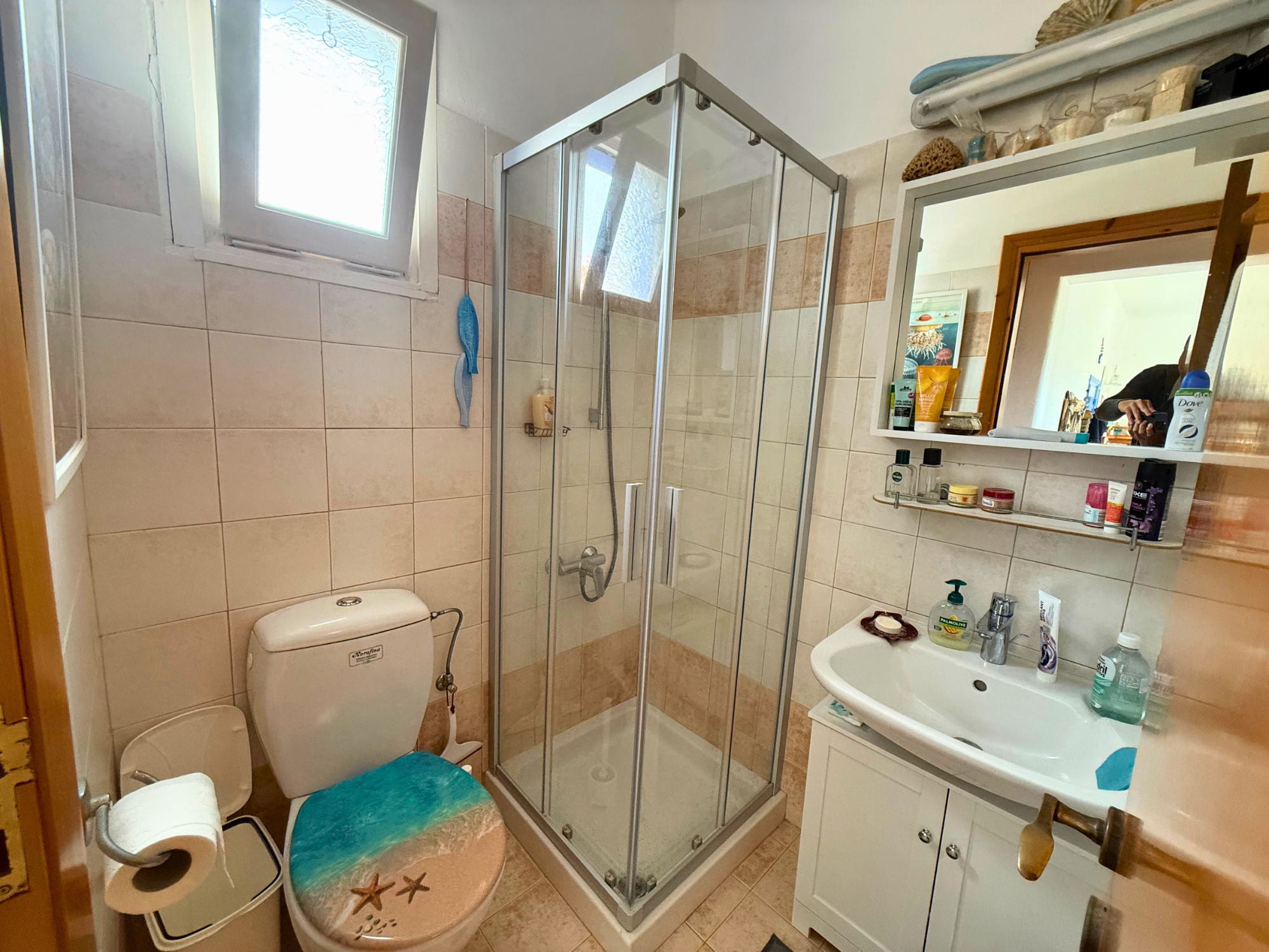 Inside, bright, view-oriented spaces flow naturally from living and dining to a well-appointed kitchen, creating a focal point that opens to the terraces. Four bedrooms, two bathrooms, two guest WCs, and two storage rooms offer flexible accommodation for family and guests. Comfort is a constant: four air-conditioning units deliver efficient heating and cooling, while double-glazed windows and a fireplace, coupled with a central heating system, make winter evenings as inviting as summer days.